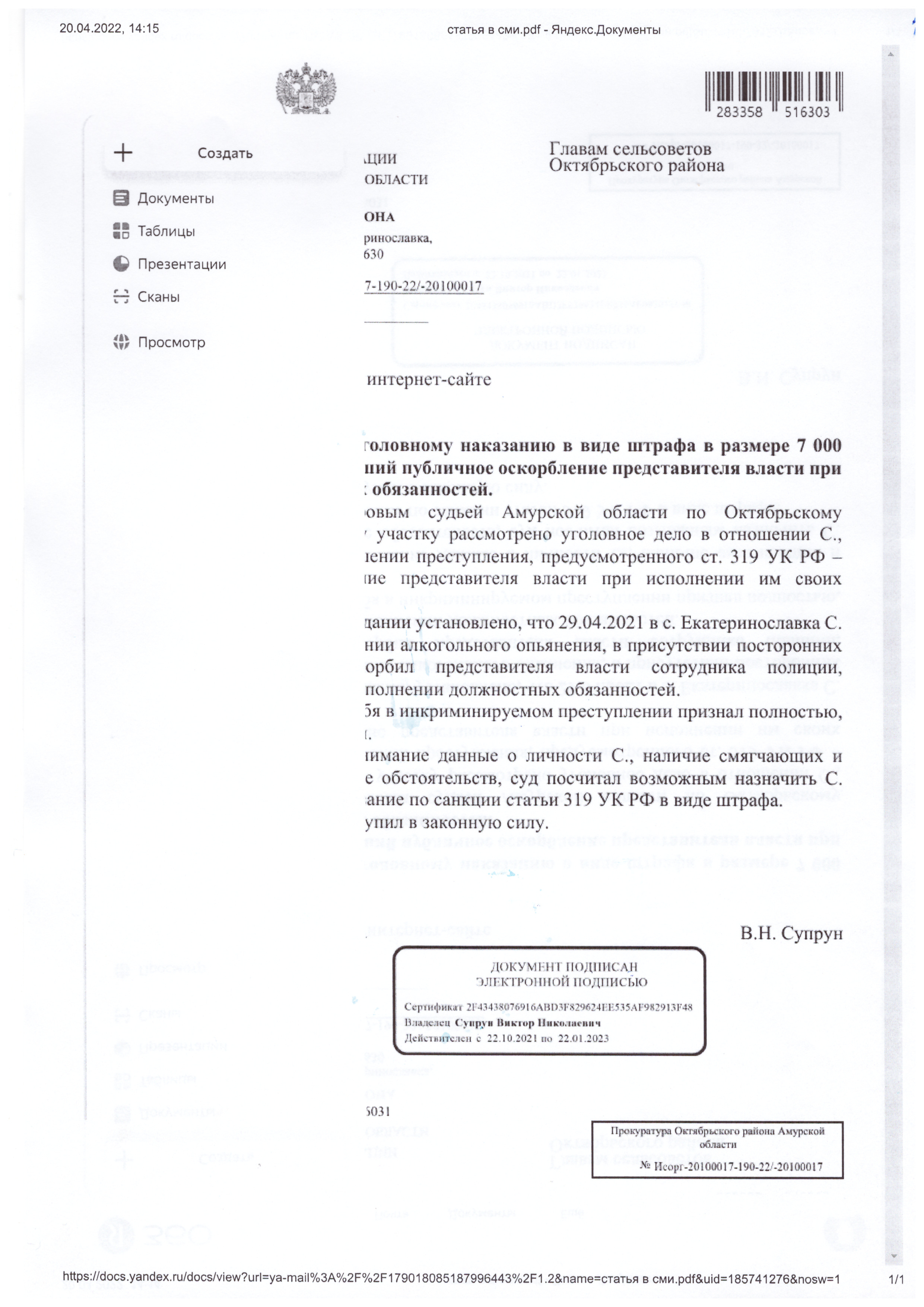| О привлечении к уголовному наказанию | скачать (doc, 0.002 Mb) |